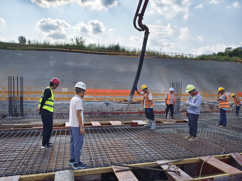 為確保工程按質按量推進,市建科院監理團隊從技術指導、過程監督、協同聯動等多方面發力,構建起了全流程監理管控體系:技術先行,提前破解難點。面對工程“高、多”難題,監理團隊提前介入施工方案階段的審核,組織技術專家對10米高站臺層模板支撐體系、夾層風道掛設等關鍵工序進行專項論證,優化施工工藝參數;針對消防水池、電纜夾層等外掛結構的接口設計進行復核,明確各專業施工的銜接節點,從源頭上規避技術風險。過程嚴管,守住質量安全底線。監理團隊推行“旁站 + 巡視 + 平行檢驗”相結合的監督模式,對混凝土澆筑、鋼筋綁扎等關鍵工序實施24小時旁站監理,實時把控材料質量與施工工藝;針對夏季高溫施工,重點監督防暑降溫措施落實、混凝土水化熱控制及養護方案執行情況,累計下發監理通知單共計15份,督促整改安全質量隱患達43項,確保施工全過程“零安全事故、零質量問題”。協同聯動,高效推進進度。監理團隊建立起“每日溝通、每周協調”的工作機制,每日與施工單位對接當日進度與問題,每周組織建設、施工、設計等多方召開監理周例會、協調會,協調解決資源調配、工序銜接難題。同時,積極響應項目部“劃區設崗”管理模式,監理團隊人員按責任分區深入作業班組,同步參與“當日講評,每日安全晨會”,及時反饋監督意見,推動管理與作業的高效協同。