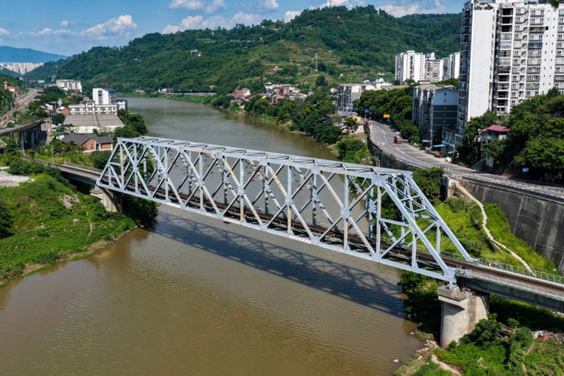 萬家咀大橋上跨綦江,主橋?yàn)橄鲁惺胶?jiǎn)支鋼桁梁結(jié)構(gòu),主橋跨徑為128米,橋面寬度為8米,主桁高度為16米。鋼桁梁由主桁、橋梁系、連接系、橋門架及橫聯(lián)組成,桿件之間采用高強(qiáng)螺栓進(jìn)行連接。
