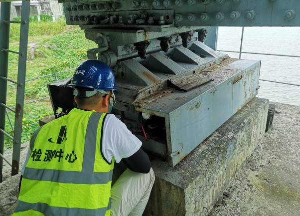 (檢測(cè)人員進(jìn)行橋梁支座位移檢測(cè))