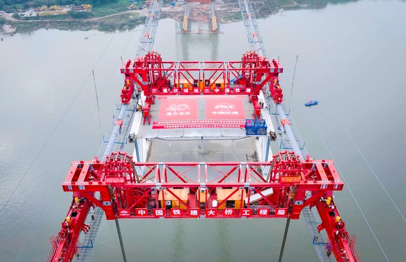 近日,由重慶城投集團投資、城投建設公司組織建設、中國鐵建大橋局承建,重慶設計集團所屬子企業重慶市建筑科學研究院(以下簡稱“市建科院”)負責監理的渝長高速復線連接道控制性節點工程——黃桷沱長江大橋,順利完成首節鋼桁梁吊裝工作,標志著大橋正式轉入上部結構拼裝階段,為2026年年中主橋合龍奠定了堅實基礎。