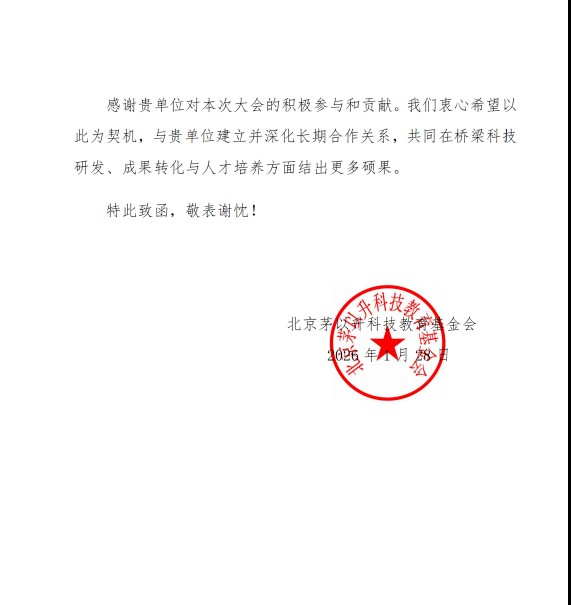 近日,茅以升科技教育基金會橋梁委員會換屆大會暨“十五五”橋梁技術創(chuàng)新與產業(yè)發(fā)展論壇在重慶圓滿舉行。作為本次論壇的支持單位,重慶設計集團市建科院憑借出色的現場保障與專業(yè)的技術展示,收到了北京茅以升科技教育基金會發(fā)來的感謝信,獲權威機構高度認可!